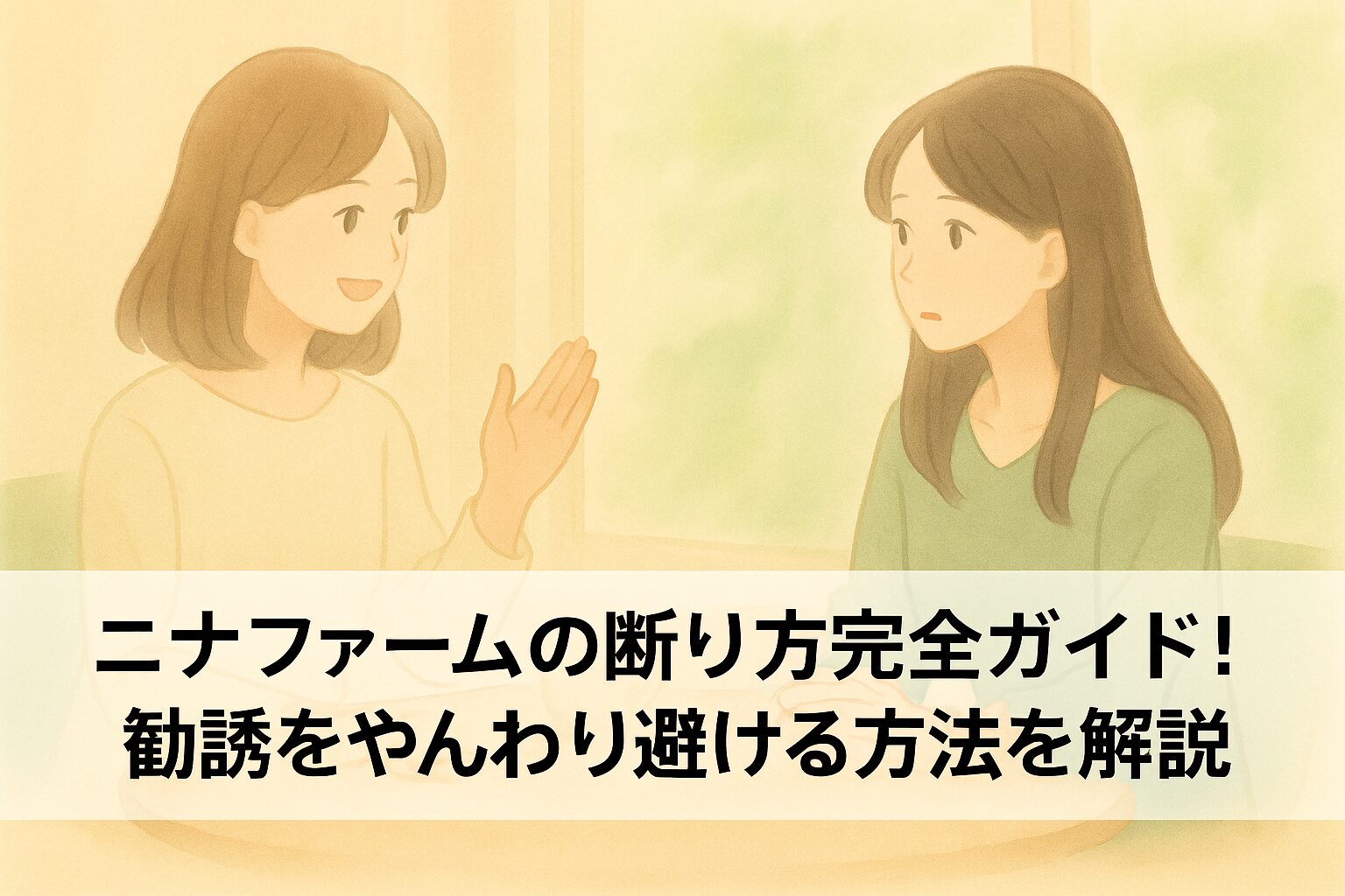 今回は、ニナファームの勧誘をやんわり断る具体的な方法から断ったあとの人間関係の保ち方まで、丁寧にご紹介しました。